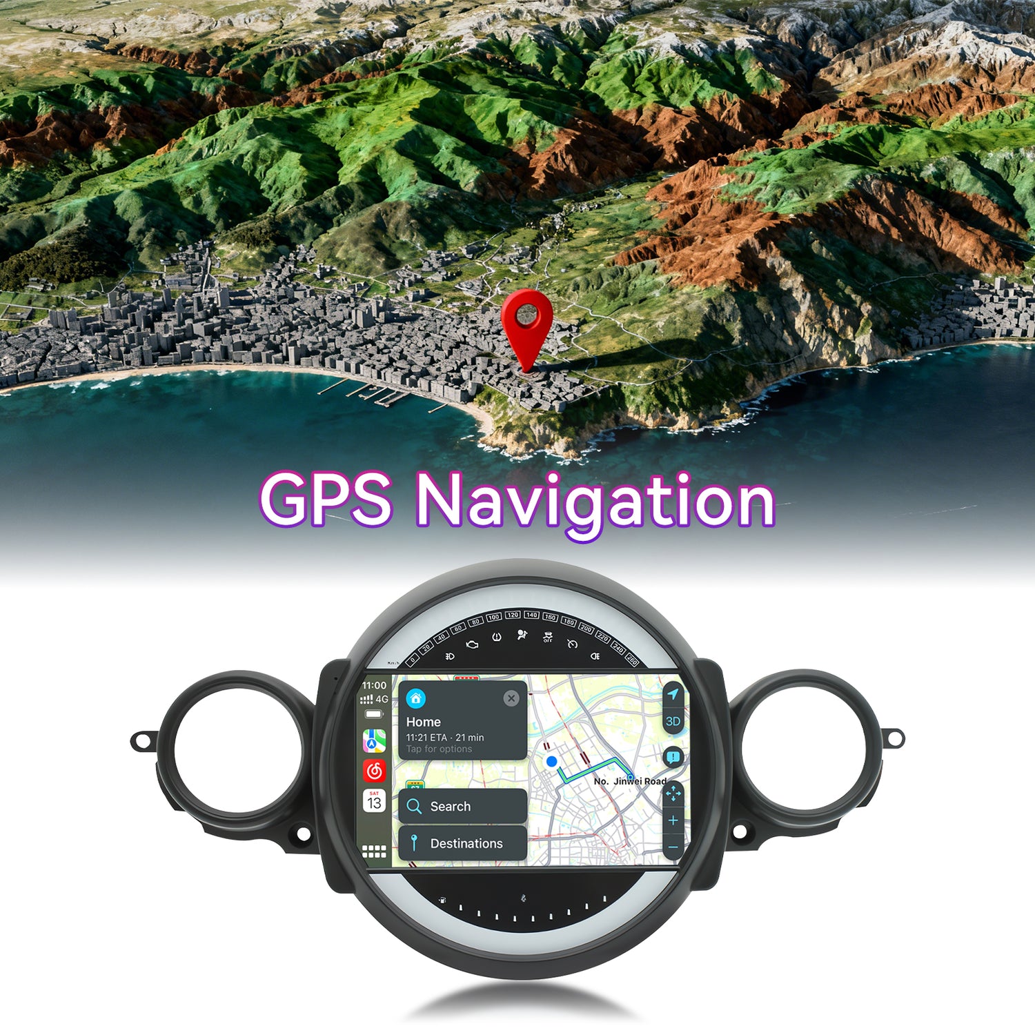 【GPS Navigation & WiFi】This wireless car radio for BMW Mini Cooper 2007-2014 features a built-in navigation module supporting both offline and online maps. Through hotspot connection, you can access maps and GPS navigation on the car's touchscreen while driving, ensuring you never get lost. It also supports Bluetooth connectivity for playing your favorite music and more. The head unit's screen allows free installation and uninstallation of Android apps from the app store, among other functions.