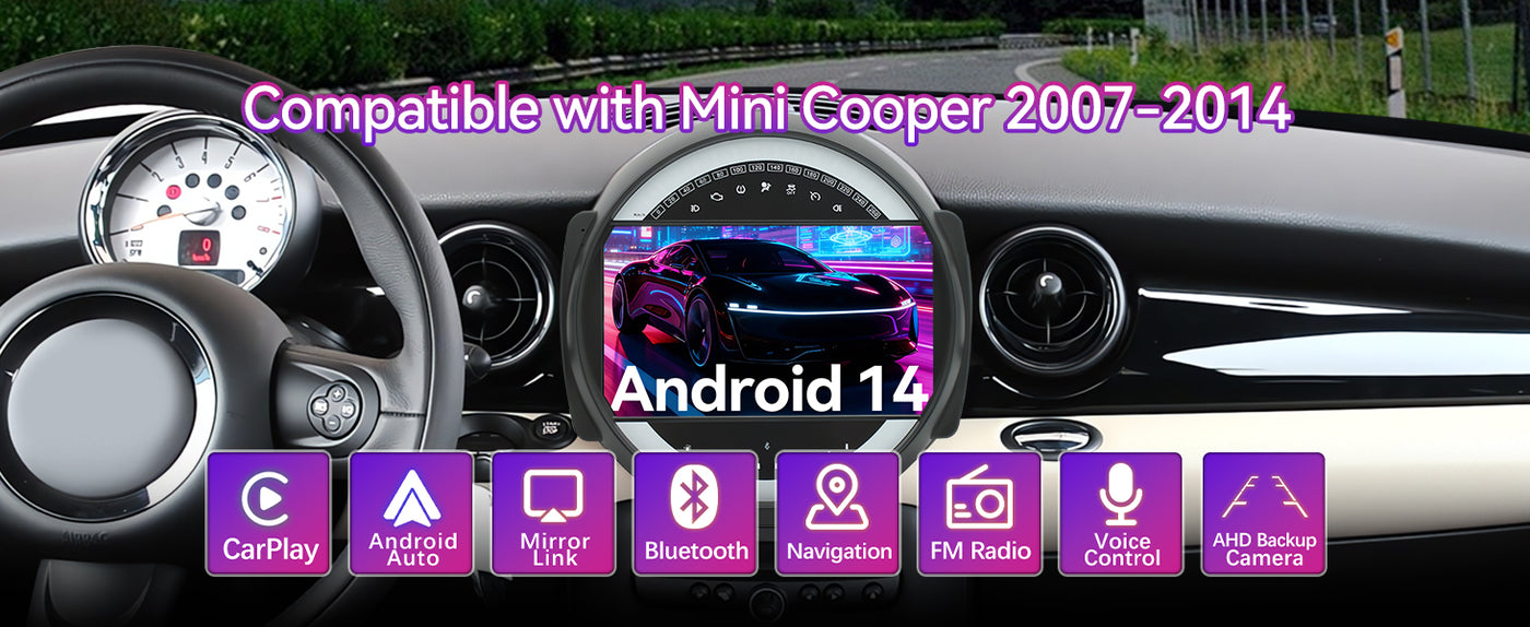 【Customized for Your BMW Mini Cooper 】The car stereo is built-in with the latest Android 14 system, paired with a cutting-edge 4 cores processor for superior performance and energy efficiency, this car stereo screen outperforms conventional other car radio stereo. Equipped with 1.5Ghz CPU, 4GB RAM ensures smooth operation and faster response, 64GB ROM for more apps installed.