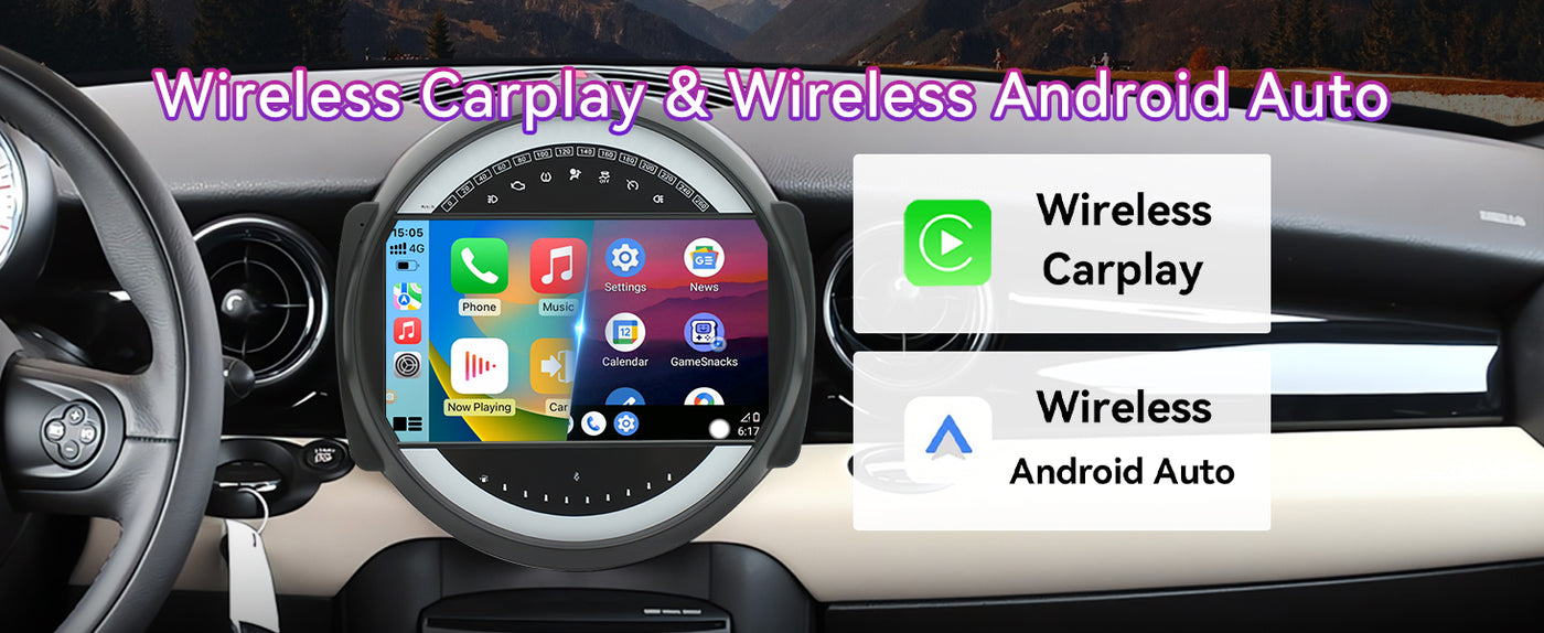 Car Radio Compatible With BMW Mini Cooper 2007-2014,4G+64G,9" Touch Screen Car Stereo with Wireless Carplay&Android Auto,FM/GPS/SWC/Mirror Link/Backup Camer