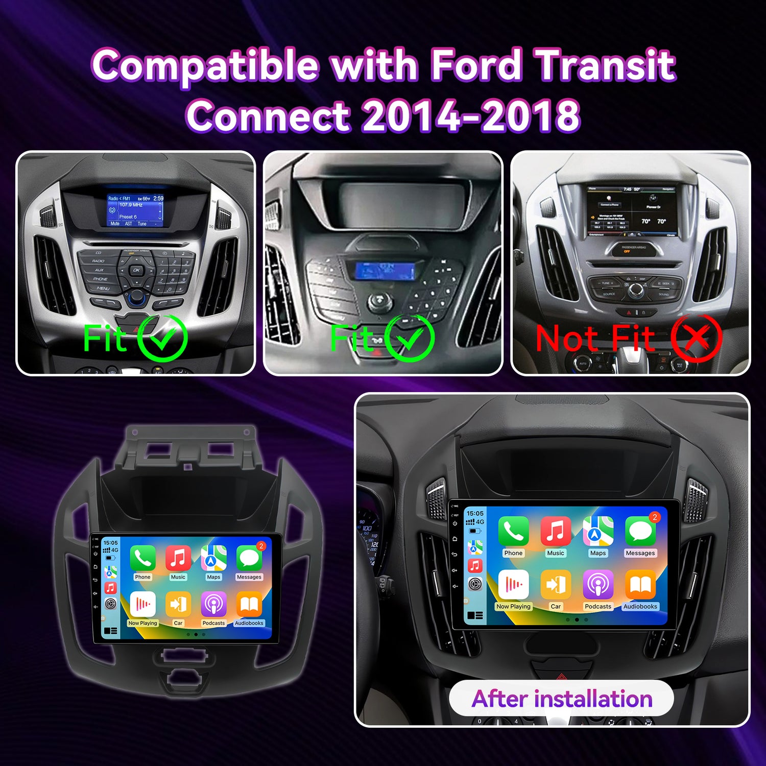 Car Radio Compatible with Ford Transit Connect 2014-2018,9 Inch Touch Screen Car Stereo with Wireless Carplay Android Auto,GPS FM WiFi Bluetooth Backup Camera.4+64GB
