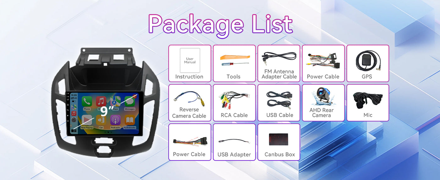【Applicable models】 9 inch Touchscreen Double Din Car Stereo Radio Compatible with Ford Transit Connect 2014-2018