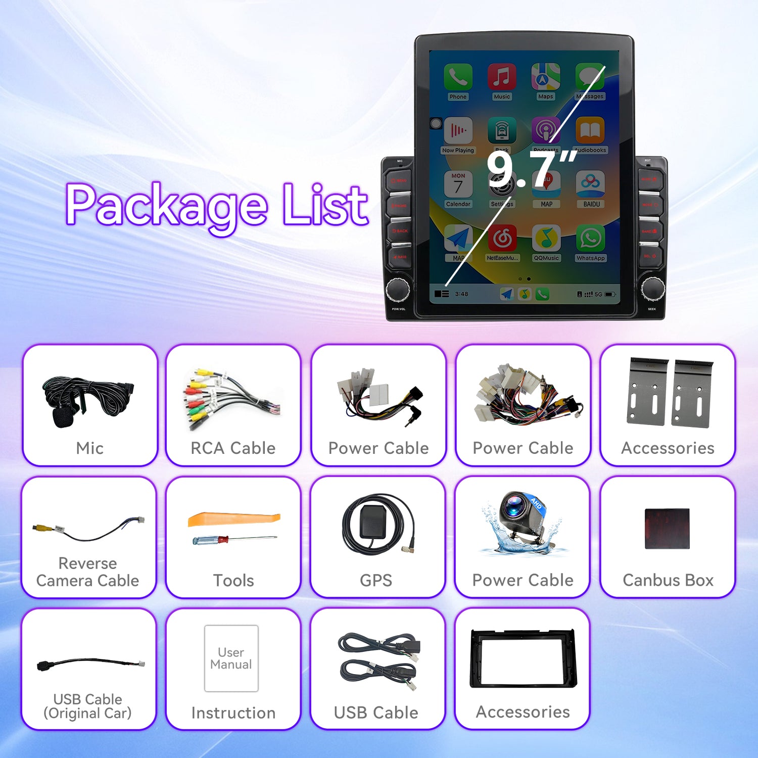 【System Optimization】- Car radio player has the latest Android 14 operating system 4GB (RAM)+64GB (ROM), powerful core processor, ensures smooth operation and faster response.The 9.7 inch touch screen stereo has a larger and clearer screen, giving you a wonderful visual experience.