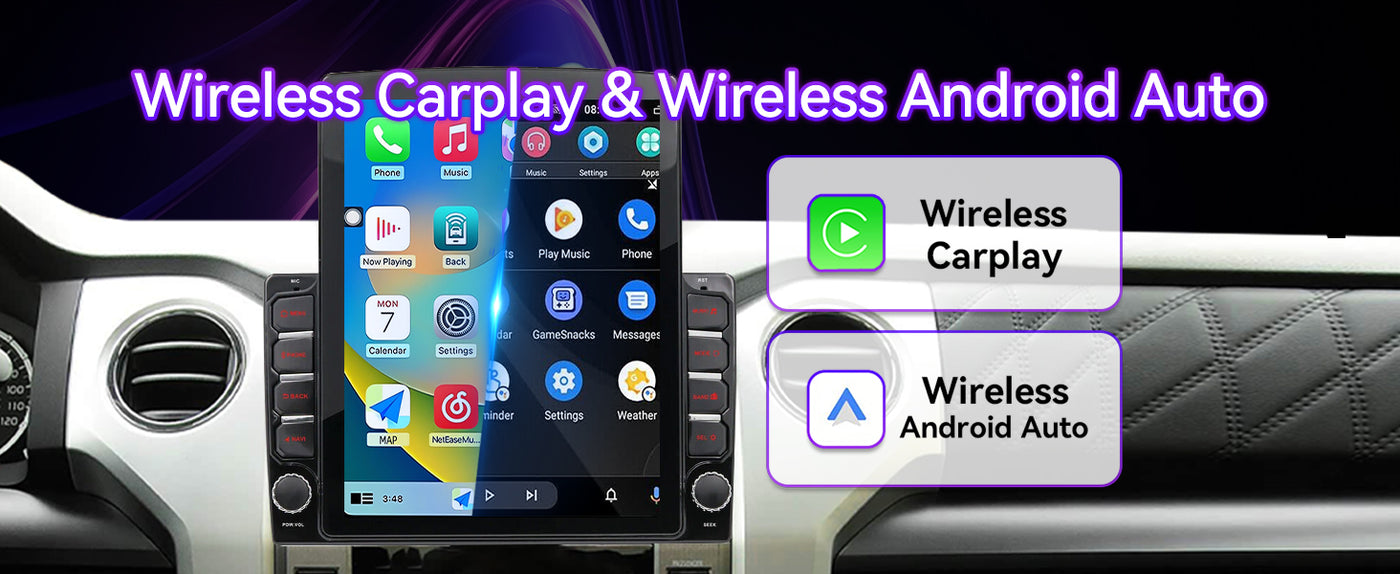 【Wireless Carplay & Android Auto】The car player can choose between wired or wireless connections for Carplay, connect to the phone, access phone contacts, email, and achieve voice control. The wireless Android auto system can be connected through a Bluetooth for navigation, calling, listening to music etc.Make work easier and drive safer.